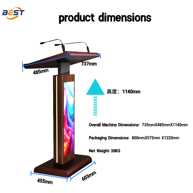Product Application Occasions and Scenarios for the BEST Multimedia Podium (Model: BEST-1014) are diverse and cater to various settings where a Podium with Display, Speech Podium, or Speaker Podium is required. This versatile product, originating from Guangdong, China, is ideal for educational institutions, corporate offices, conference centers, event venues, and more.